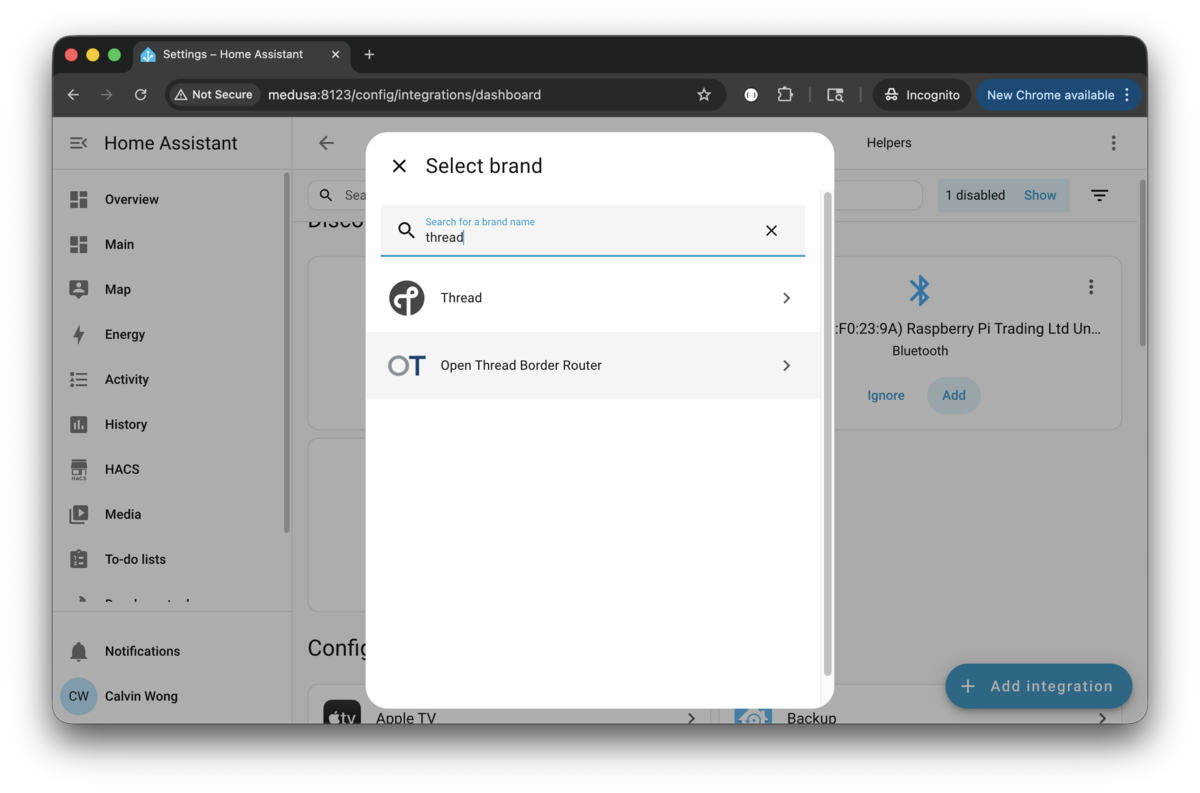 6) Add Thread and Open Thread Border Router integrations like Add Home Assistant Integrations.